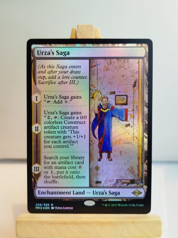 Cette version de Galaxy Foil est le résultat d’un procédé de finition plus poussé que le foil classique. Une couche spéciale est appliquée lors de l’impression afin de créer un motif étoilé intégré directement dans la surface de la carte, et non simplement posé par-dessus. Ce motif réagit à la lumière de façon différente selon l’angle, donnant cette impression de profondeur et de mouvement.
