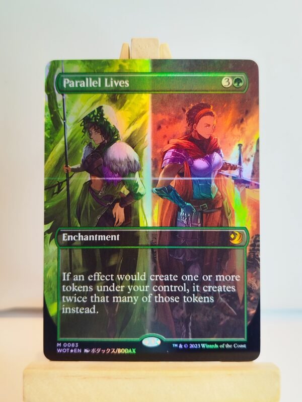 Les cartes Surge Foil se distinguent par un procédé de fabrication particulier, où l’effet foil est appliqué manuellement. Contrairement aux finitions industrielles classiques, chaque carte est travaillée individuellement, ce qui crée des variations naturelles dans les motifs, l’intensité et les reflets. Aucune Surge Foil ne ressemble parfaitement à une autre.